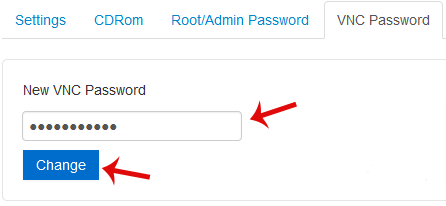 3. Scroll down, and under the VNC Password tab, enter your new password in the VNC text box. Then click on Change.