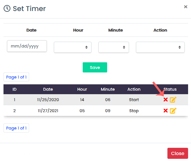 5. If you have multiple timers, hover your mouse on the appropriate one, and that line will be highlighted. Then click the Delete button in the highlighted line.