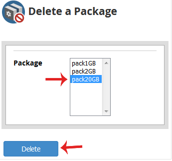 3. Under Delete a Package, choose a package you wish to delete and click on the Delete button.