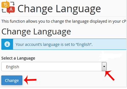 3. From the cPanel Language Configuration Page, choose your language from the dropdown menu and click on the Change button.