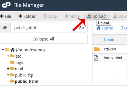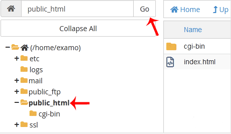 4. Navigate to the directory where you want to upload your files. For example, should you wish to upload your file to the public HTML folder, you need to go to /public_html first. On the left side, you can see a list of directories. Double Click on the public_html folder.
