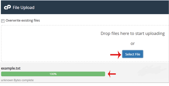6. Click on the Select File button and select the file you want to upload from your PC. After you have selected the file, the upload process will begin automatically.