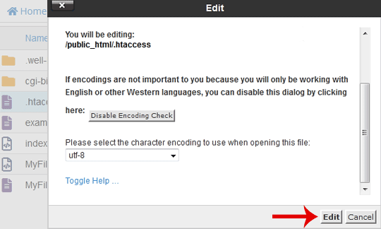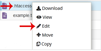 6. Right-click on the .htaccess file and then on Edit in the Context Menu.