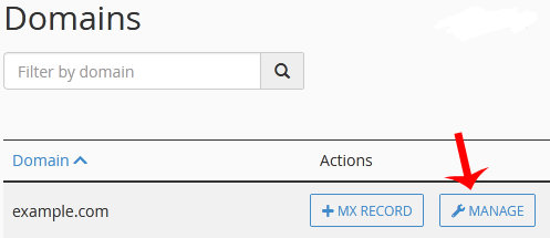 4. Click on Manage, and the DNS records will be loaded on-page.