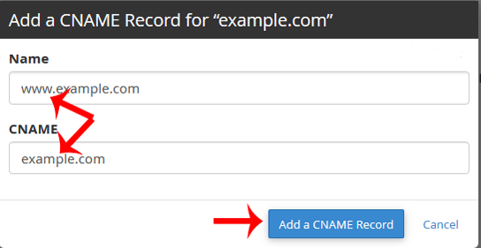 Name: Enter the name you wish to add, such as www, and cPanel will automatically add a domain name like www.example.com.