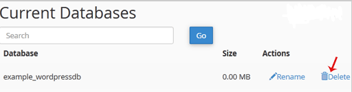 3. Under Current Databases, you can see a list of all your databases. Locate the Database you wish to remove and then click on the Delete icon.