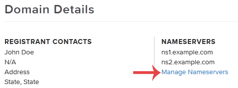 5. Scroll down to the bottom of the page and under Nameservers, click on the Manage Nameservers
