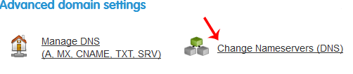 4. Scroll down to the Advanced domain settings and click on Change Nameservers (DNS).