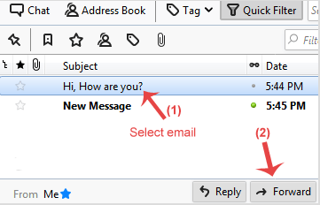 2. Go to Inbox, select the message you want to forward and it will show the Forward option. Then click on it.