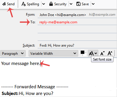 3. Type your message in the message box. Do not make any modifications to the email title and the rest of the text. Then click on Send.